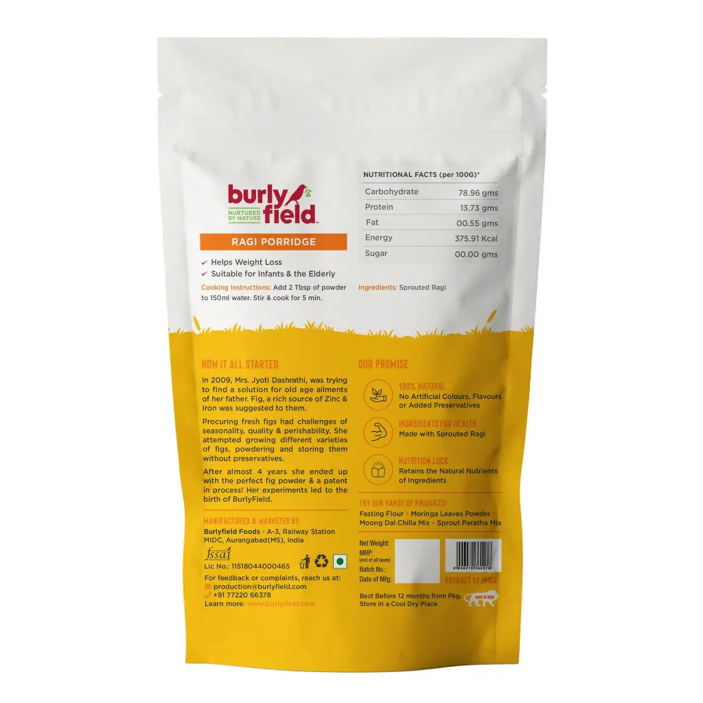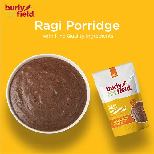 Burlyfield's Ragi Porridge Ready Mix has 90% nutrients locked in, making it very healthy for consumption. This holistic breakfast food is a rich source of calcium, supplies the body with essential amino acids, keeps blood sugar levels in check, and helps in weight management. This dish is easy to digest, making it ideal for babies and pregnant women. Buy our nourishing Ragi Porridge Ready Mix for enhancing your health.